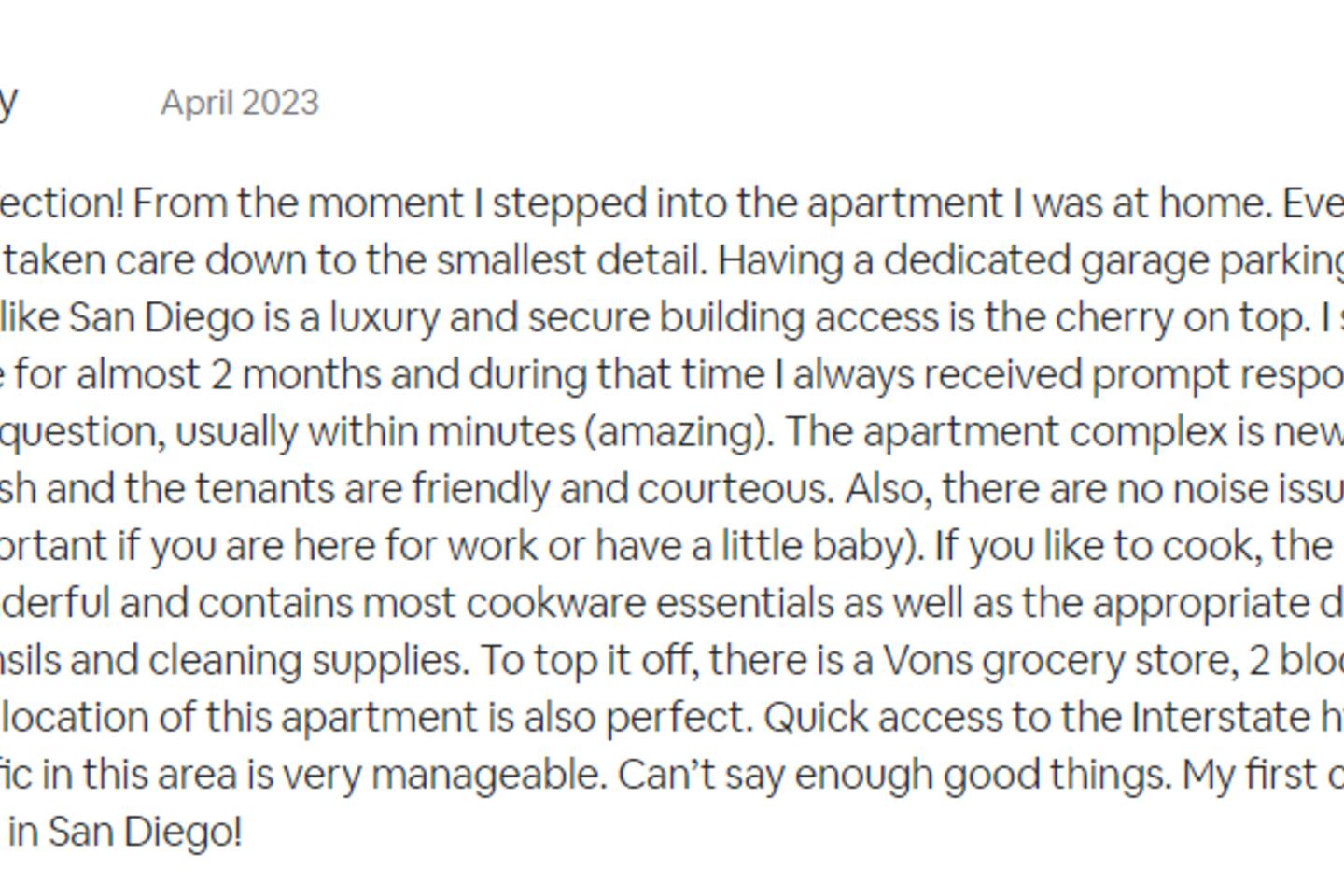 → Pet Friendly - please inquire for details. → Long-Term Bookings AVAILABLE! → Dedicated Parking with EV Charging for one vehicle in our Secure Parking Garage → Dedicated Workspace → Super Fast 1 Gbps High Speed WiFi → 65” 4k Smart TVs throughout → Complimentary access to Netflix & other streaming providers including Live TV → King Size Beds in both bedrooms → Suitable for Kids, Parents and Business Travelers → Fully Equipped Gourmet Kitchen → Stainless Steel Appliances. → The Gourmet Kitchen is fully stocked for all of your cooking needs. → Keurig Coffee/Cream & Gourmet Tea. → For Families: Pack n' Play, High Chair, Stroller. → Linens and Basic toiletries are provided, compliments of your host. → Central A/C + Heat. → Washer and Dryer in-unit, including laundry detergent → Contactless Entry → 24-hour check in → Free Street Parking Living Room Features: → Sleeper Sofa → 65” 4K Smart TV → A/C & Heat Kitchen: → Keurig Coffee Maker → Microwave → Full set of pots, pans, dishes, glassware, and utensils → Dishwasher → Coffee, Tea, Sugar, Creamer → Full set of spices Bedrooms: → King Size Bed → 55” 4K Smart TV → Plush Mattress → Hotel-quality sheets → Lots of comfy King pillows → Luggage Rack Bathroom: → Shower → Hair Dryer → Iron and Iron Board → Quality Bath towels, mats → Complimentary starter kit of shampoo, conditioner, soap and lotion Community Shared Amenities: → Private Conference room → Outdoor BBQ and Lounge Area with Fireplaces → Indoor Lounge and shared workplace with kitchen and TV Convenient for Healthcare Professionals! ★ 10 Min to major hospitals: → Scripps Mercy Hospital → Radys Children's Hospital → Sharp Memorial Hospital → UC San Diego Medical Center - Hillcrest Great Location for Military and Federal Travelers! → 15 Min to USMC Air Station Miramar Easy for Students and Professors! → 5 Min to San Diego State University → Walking distance to Mary Wynne Medical School (1 min drive) Close to the Beach! → 15 Min to Pacific Beach → 15 Min to Mission Beach Eat, Shop, and Enjoy! → Walking Distance to Nearby Restaurants and Shops → 6 Min to Balboa Park and San Diego Zoo → 10 Min Downtown Gaslamp