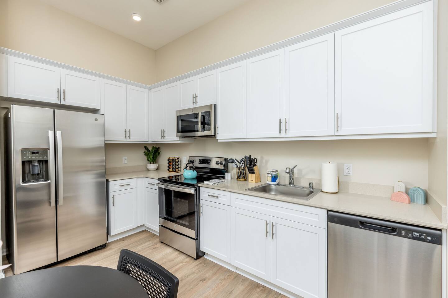 → Pet Friendly - please inquire for details. → Long-Term Bookings AVAILABLE! → Dedicated 1 Space in Secure Parking Garage, included Free → Dedicated Workspace → Super Fast 1 Gbps High Speed WiFi → 65” 4k Smart TVs throughout → Complimentary access to Netflix & other streaming providers including Live TV → King Size Bed in the bedroom → Suitable for Kids, Parents and Business Travelers → Fully Equipped Gourmet Kitchen → Stainless Steel Appliances. → The Gourmet Kitchen is fully stocked for all of your cooking needs. → Keurig Coffee/Cream & Gourmet Tea. → For Families: Pack n' Play, High Chair, Stroller. → Linens and Basic toiletries are provided, compliments of your host. → Central A/C + Heat. → Washer and Dryer in-unit, including laundry detergent → Contactless Entry → 24-hour check in → Free Street Parking Living Room Features: → Sleeper Sofa → 65” 4K Smart TV → A/C & Heat Kitchen: → Keurig Coffee Maker → Microwave → Full set of pots, pans, dishes, glassware, and utensils → Dishwasher → Coffee, Tea, Sugar, Creamer → Full set of spices Bedroom: → King Size Bed → 55” 4K Smart TV → Plush Mattress → Hotel-quality sheets → Lots of comfy King pillows → Luggage Rack Bathroom: → Shower → Hair Dryer → Iron and Iron Board → Quality Bath towels, mats → Complimentary starter kit of shampoo, conditioner, soap and lotion Community Shared Amenities: → Private Conference room → Outdoor BBQ and Lounge Area with Fireplaces → Indoor Lounge and shared workplace with kitchen and TV Convenient for Healthcare Professionals! ★ 10 Min to major hospitals: → Scripps Mercy Hospital → Radys Children's Hospital → Sharp Memorial Hospital → UC San Diego Medical Center - Hillcrest Great Location for Military and Federal Travelers! → 15 Min to USMC Air Station Miramar Easy for Students and Professors! → 5 Min to San Diego State University → Walking distance to Mary Wynne Medical School (1 min drive) Close to the Beach! → 15 Min to Pacific Beach → 15 Min to Mission Beach Eat, Shop, and Enjoy! → Walking Distance to Nearby Restaurants and Shops → 6 Min to Balboa Park and San Diego Zoo → 10 Min Downtown Gaslamp